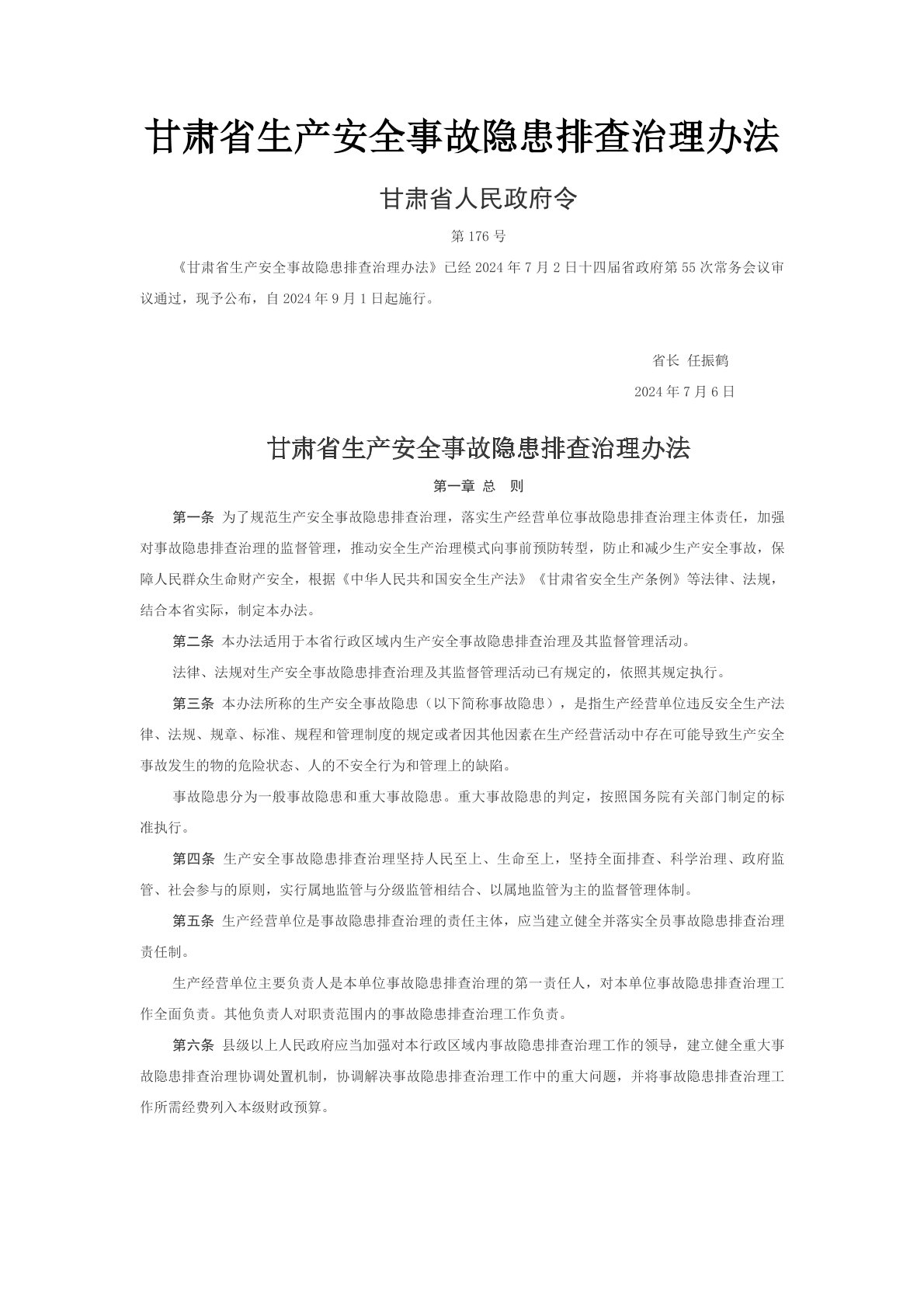 甘肃省生产安全事故隐患排查治理办法