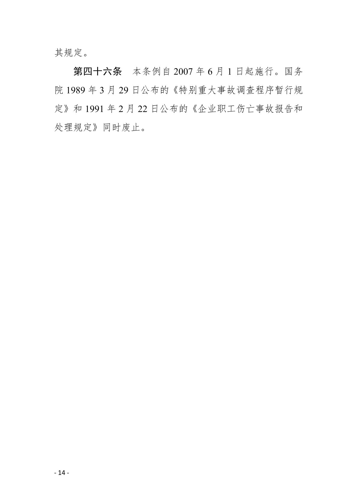 生产安全事故报告和调查处理条例