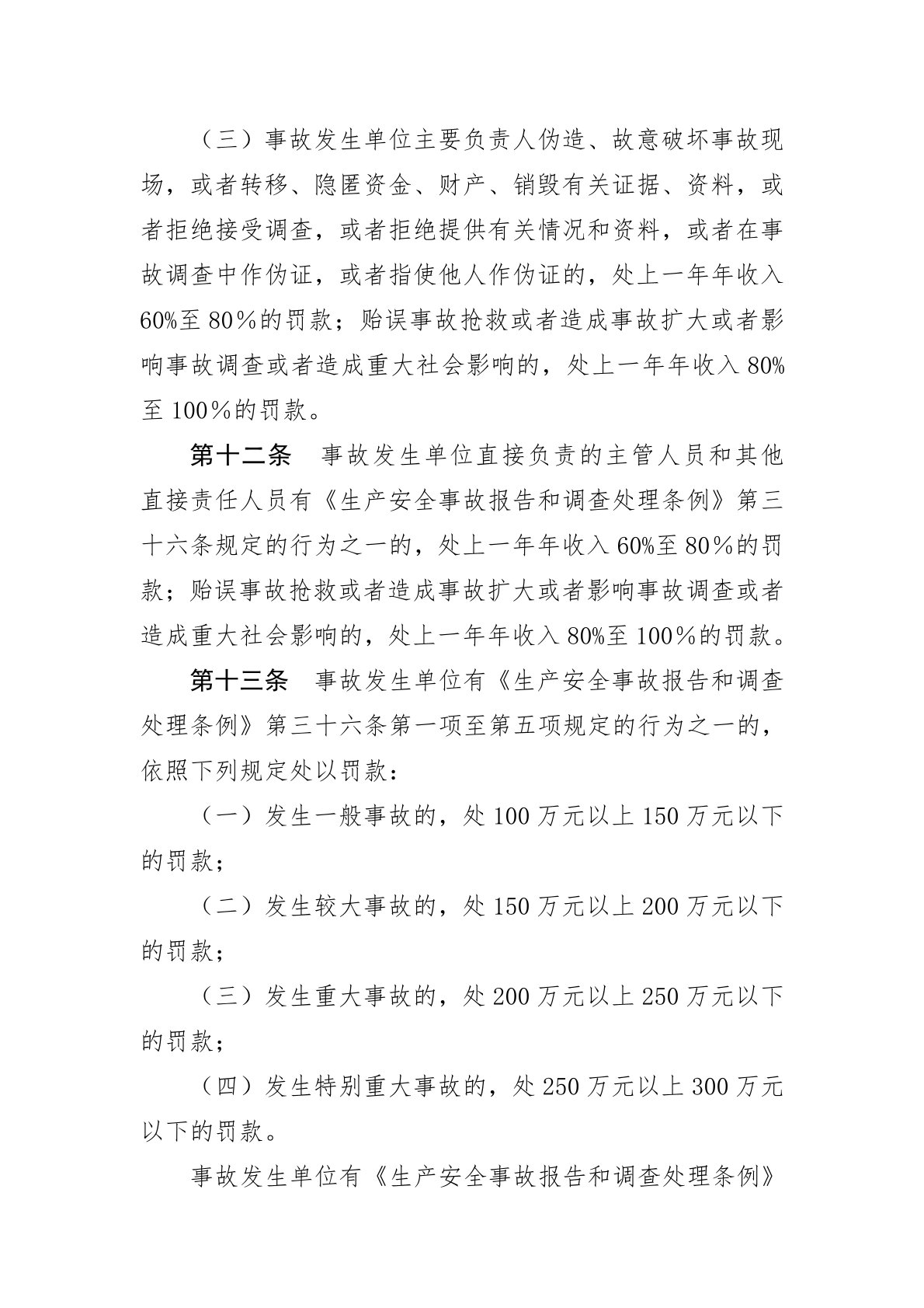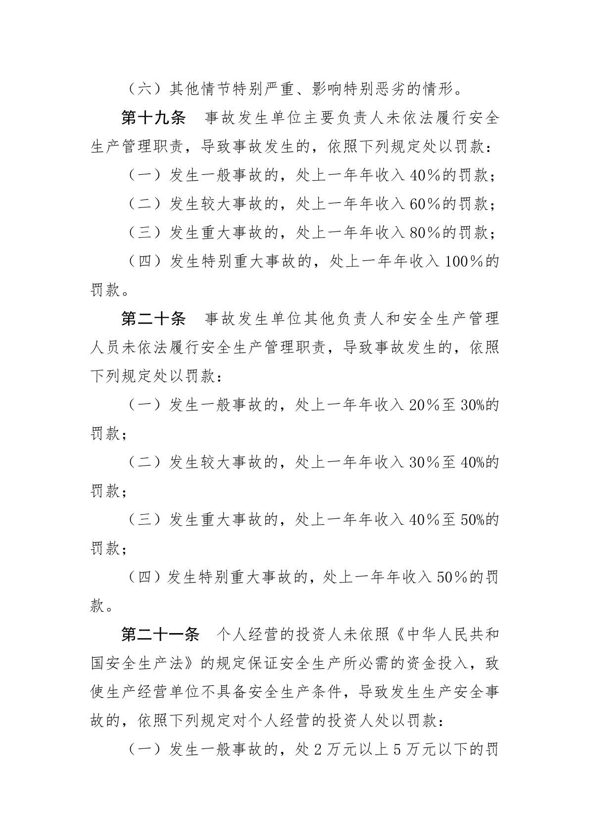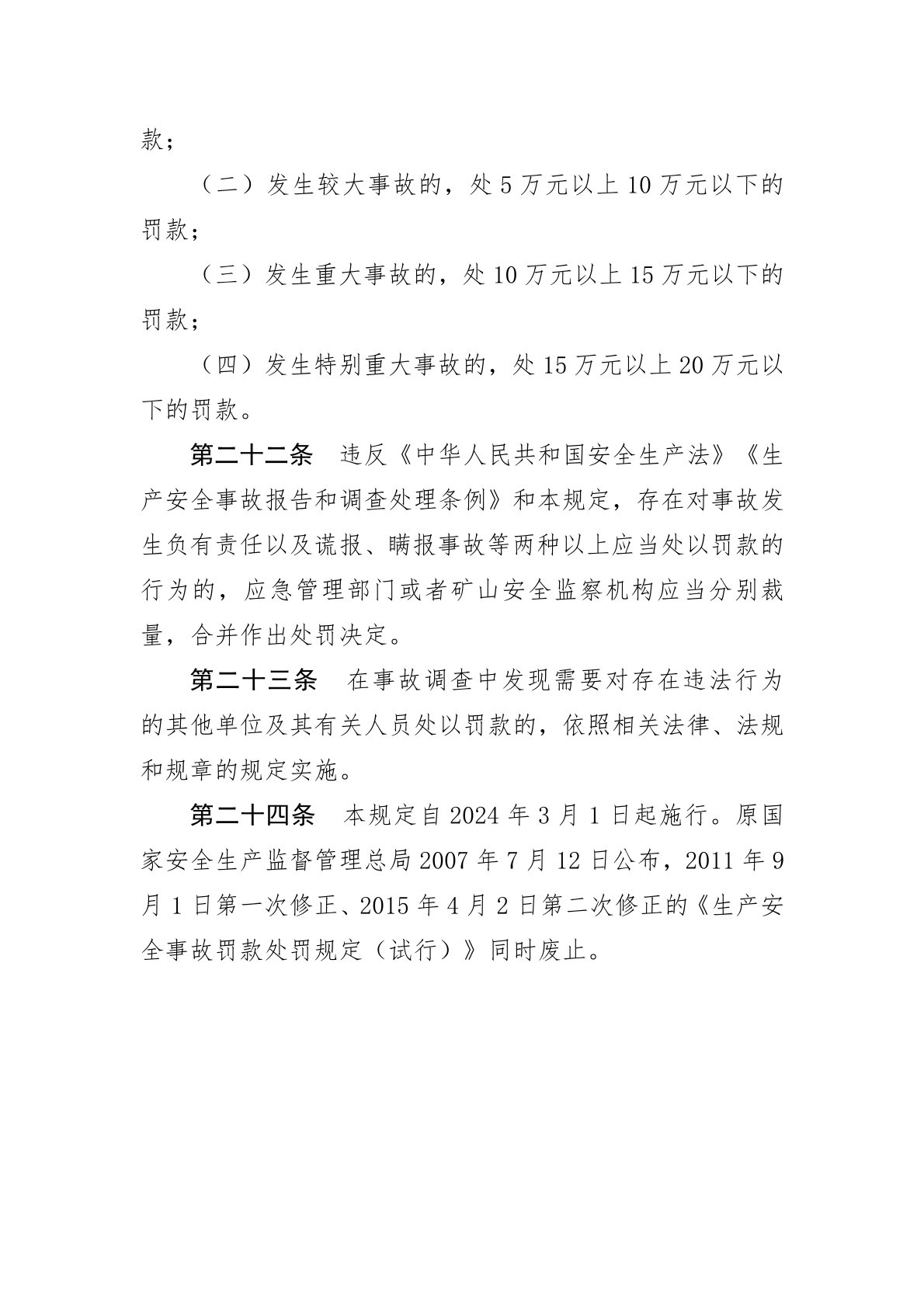 生产安全事故罚款处罚规定