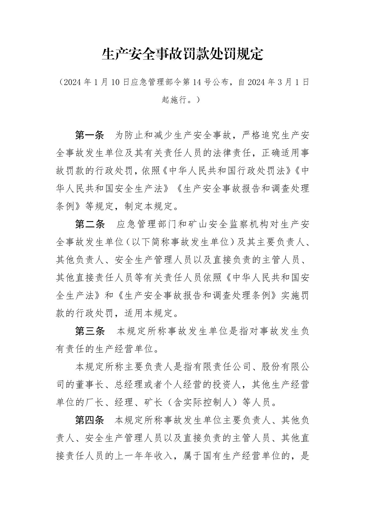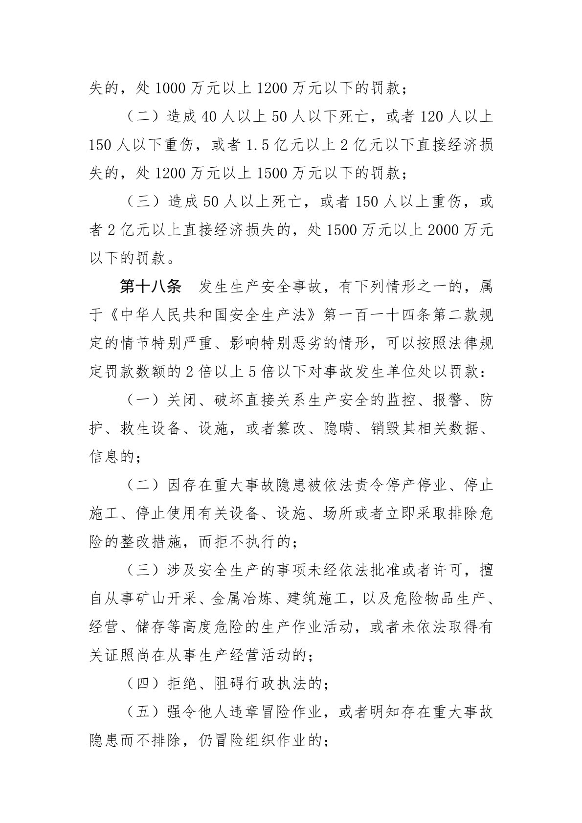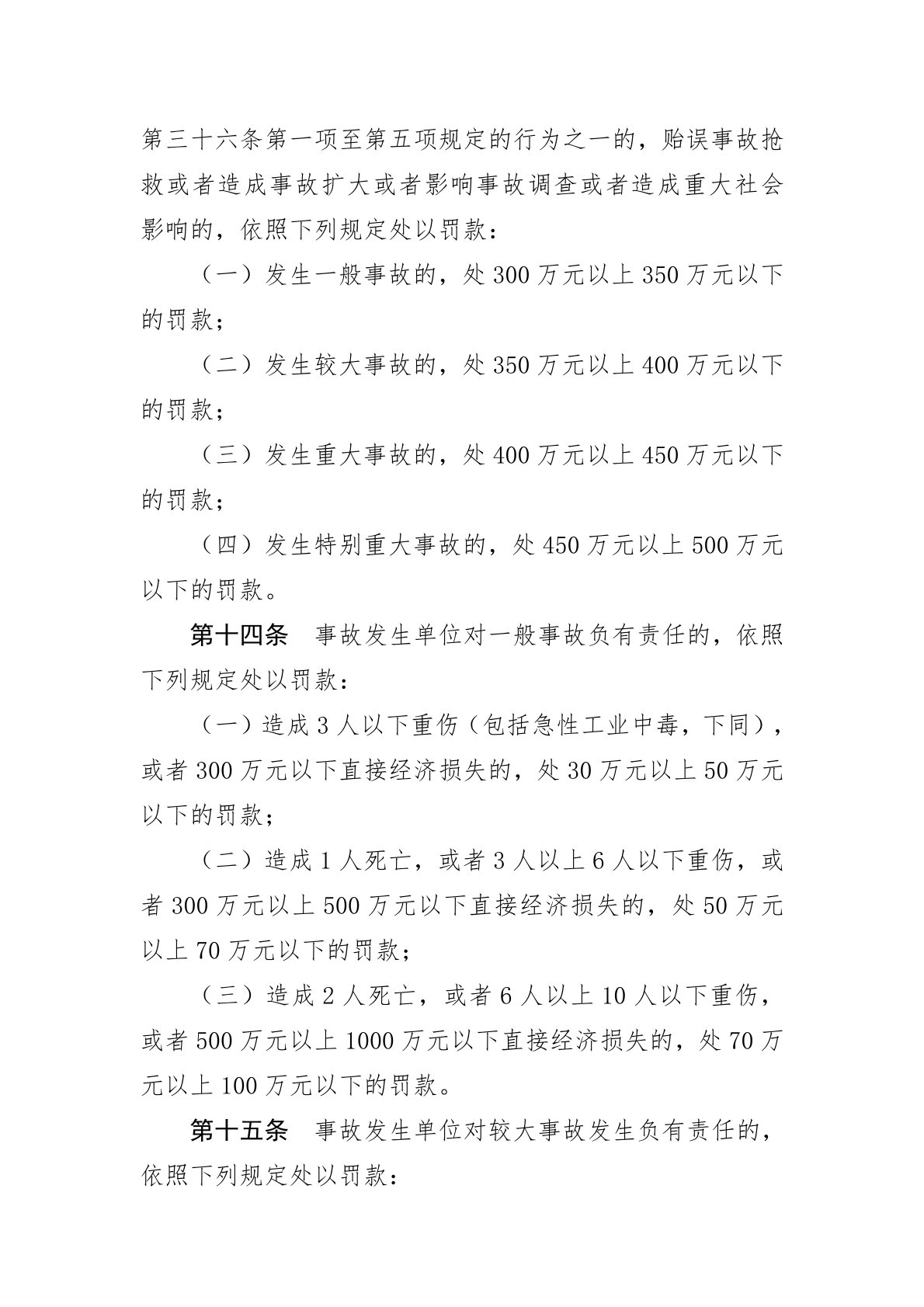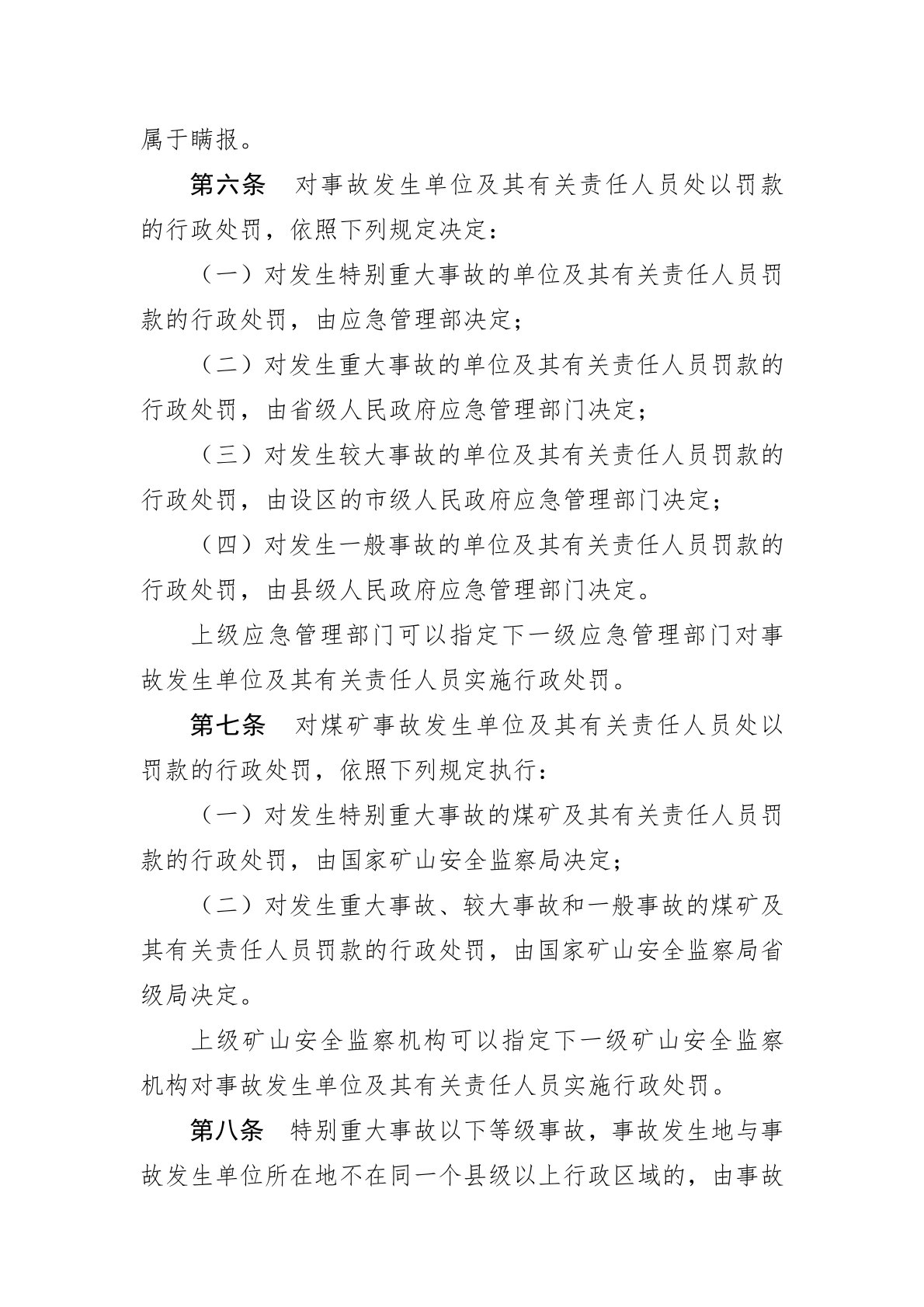 生产安全事故罚款处罚规定