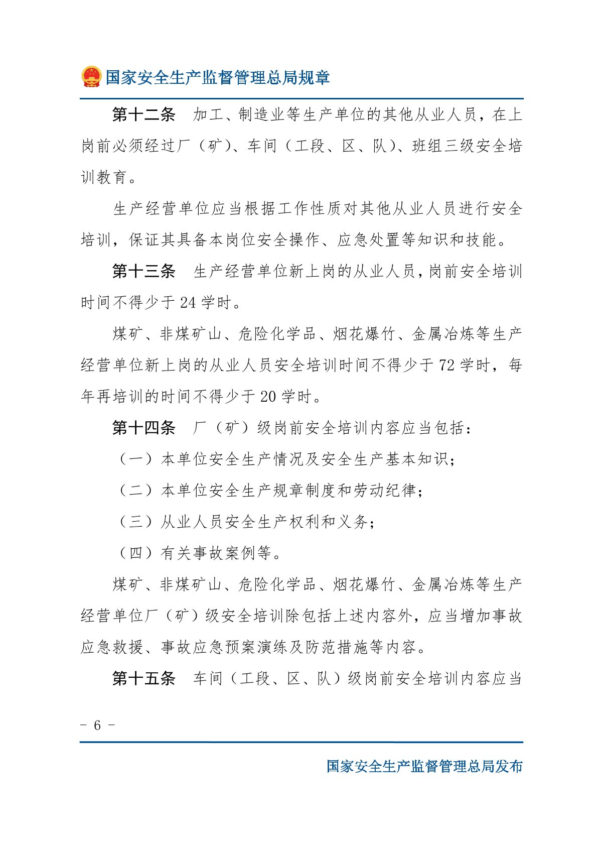 生产经营单位安全培训规定